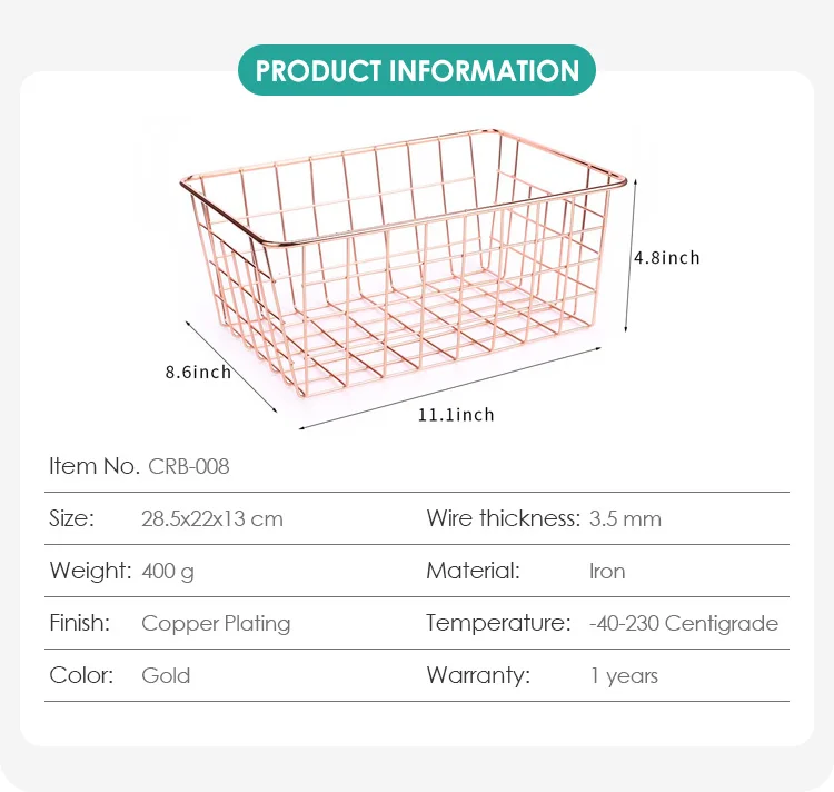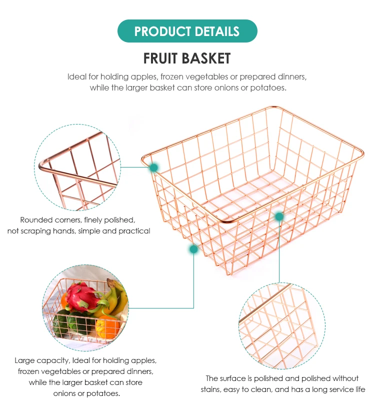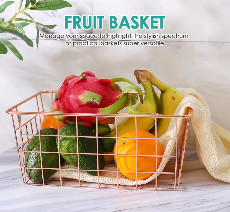 Decoration Most Popular Metal Wire Storage Baskets Rose Gold Iron Wire Fruit Basket