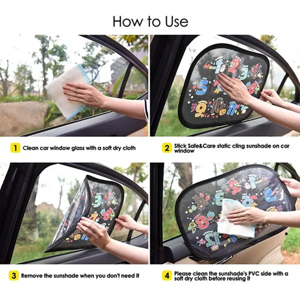 3- High Quality- our car sunshade has 2 sides. One side is made of premium Static cling material and the other side, the 80 GSM protective mesh that blocks up to 98% of damaging UV rays.