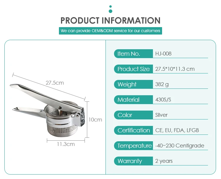 Professional Stainless Steel Baby Food Durable Stainless Steel Potato Ricer And Masher