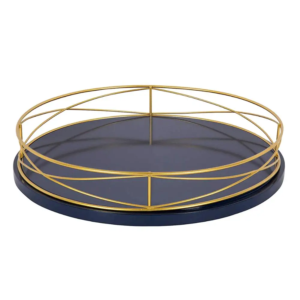 Metal Material Designer Round Mirror Tray with Handle, Suitable for Home Decor.Elegant Design. We are a Manufacturer and can Provide Best Prices.