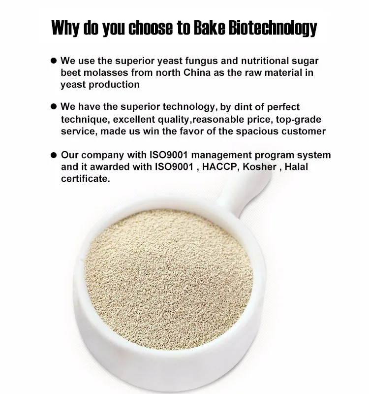 Application | Low sugar yeast: Suitable for bread making with no sugar or low sugar in recipe (sugar content in flour dough: 0-7%).High sugar yeast:Suitable for bread making with more sugar in recipe (sugar content in flour dough:above 7%). |