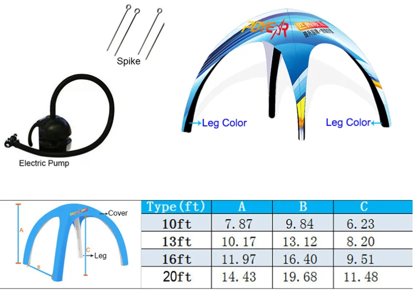 Stock Color Air Tent Material: 500D polyester fabric with acrylic coating, waterproof (flame-retardant)