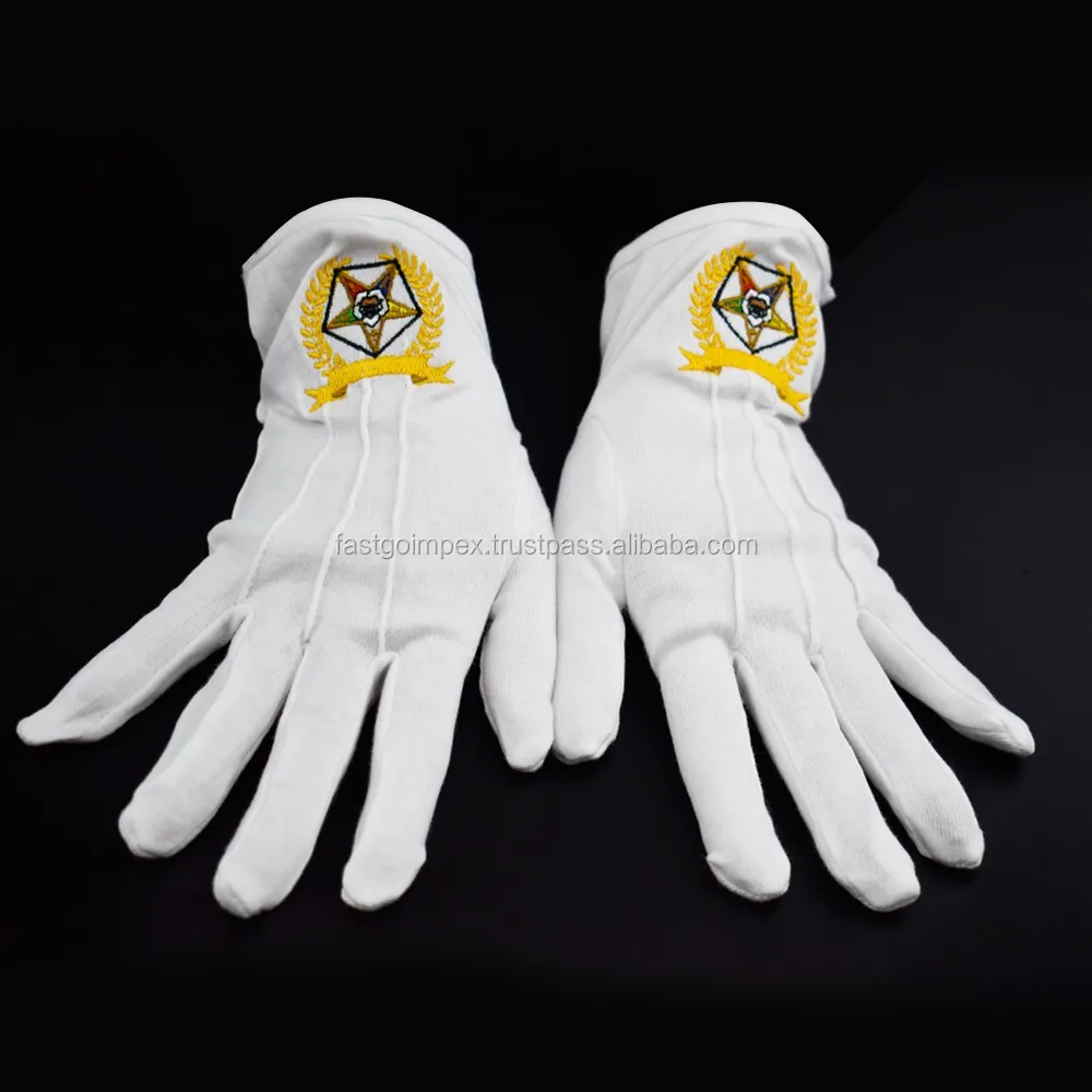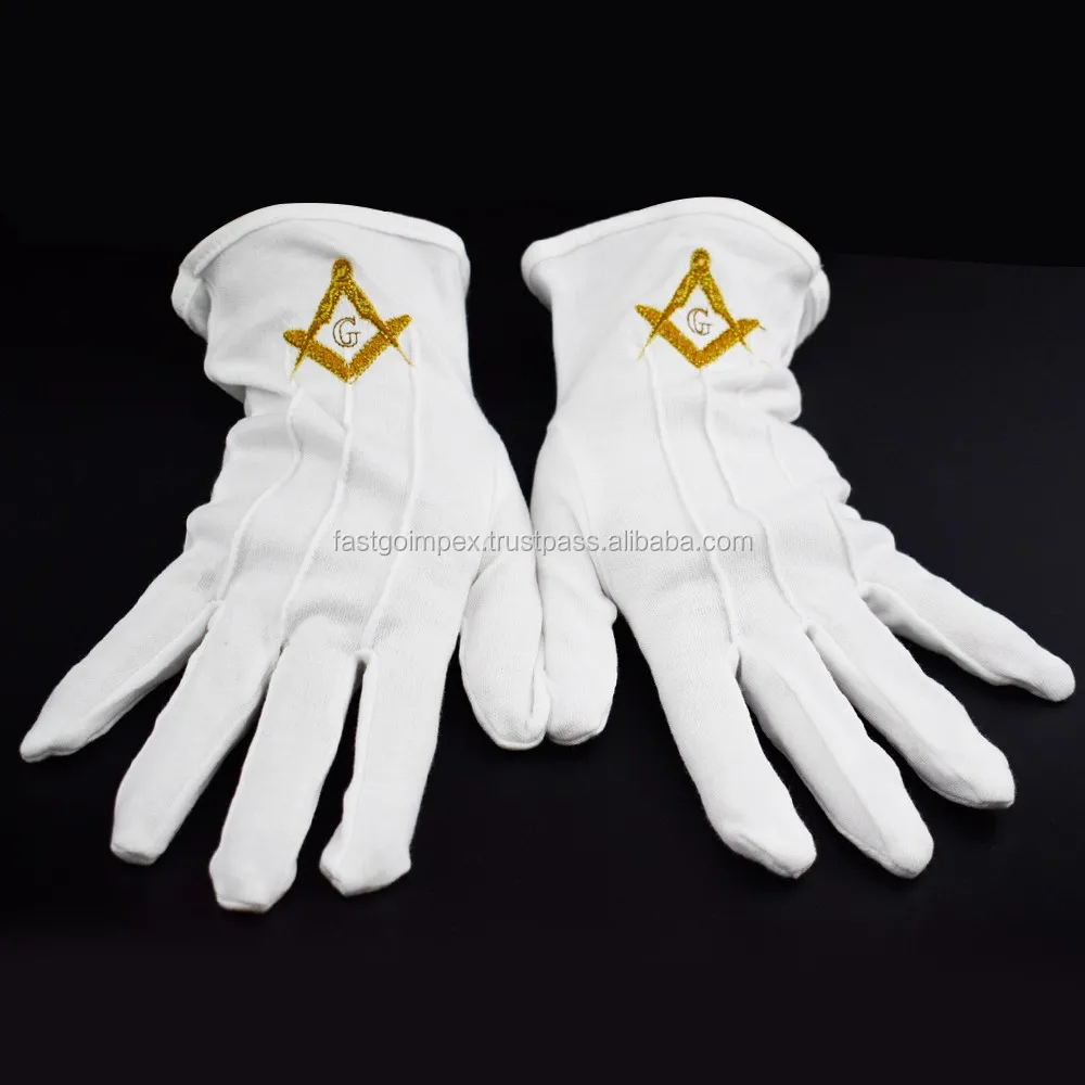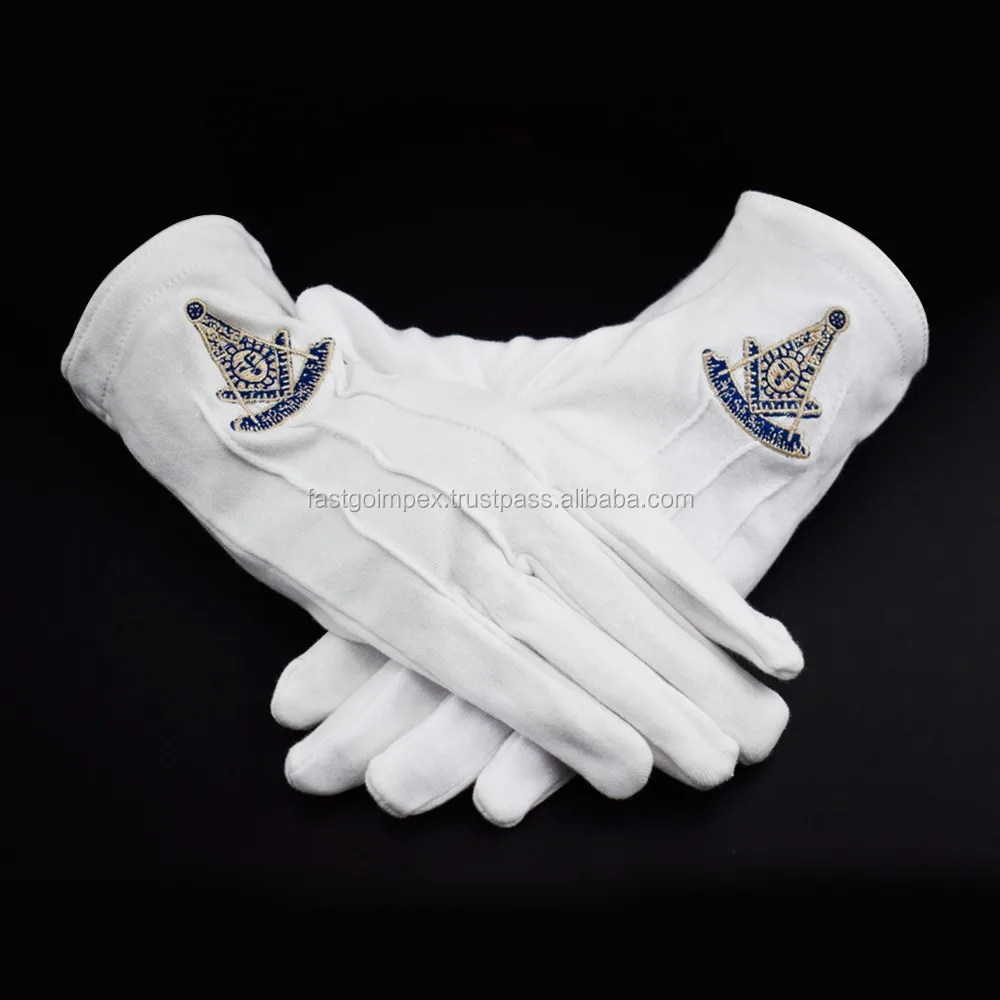 masonic regalia/Masonic Cotton Glove with Blue Embroidered Square & Compass Logo