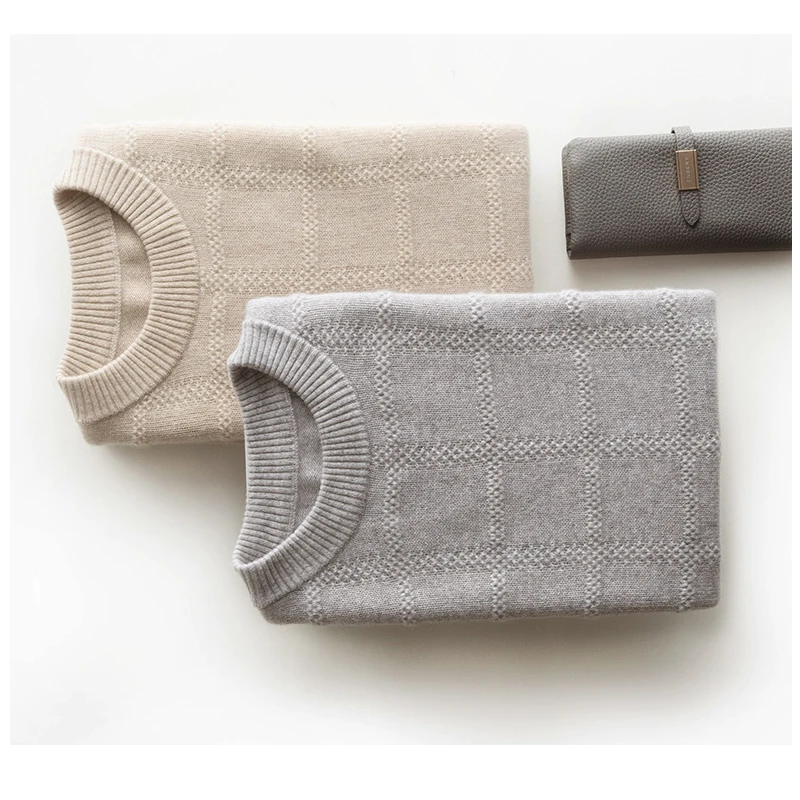Customized Crew Neck Private Label Cashmere X letter Argyle Sweater For Men.