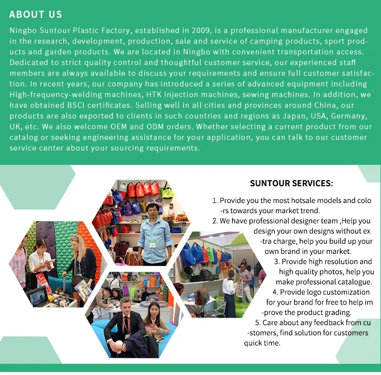 Q4: What value-added services Suntour provide? A4: We provide Free logo, Free stock, Free product design, Free customized design and Free professional product photos for you. Q5: How about the payment clause? A5: Payment of samples, 100% in advance. General orders, 30% T/T in advance ,balance before shippment. O/A and L/C also available.