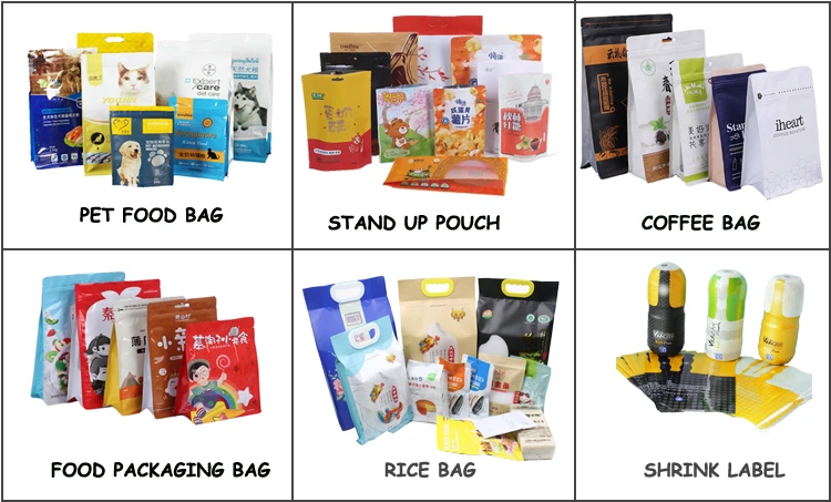 | Material | BOPP/VMPET/LLDPE(Aluminum Foil), PET/LLDPE, Kraft Paper/PE, etc. |