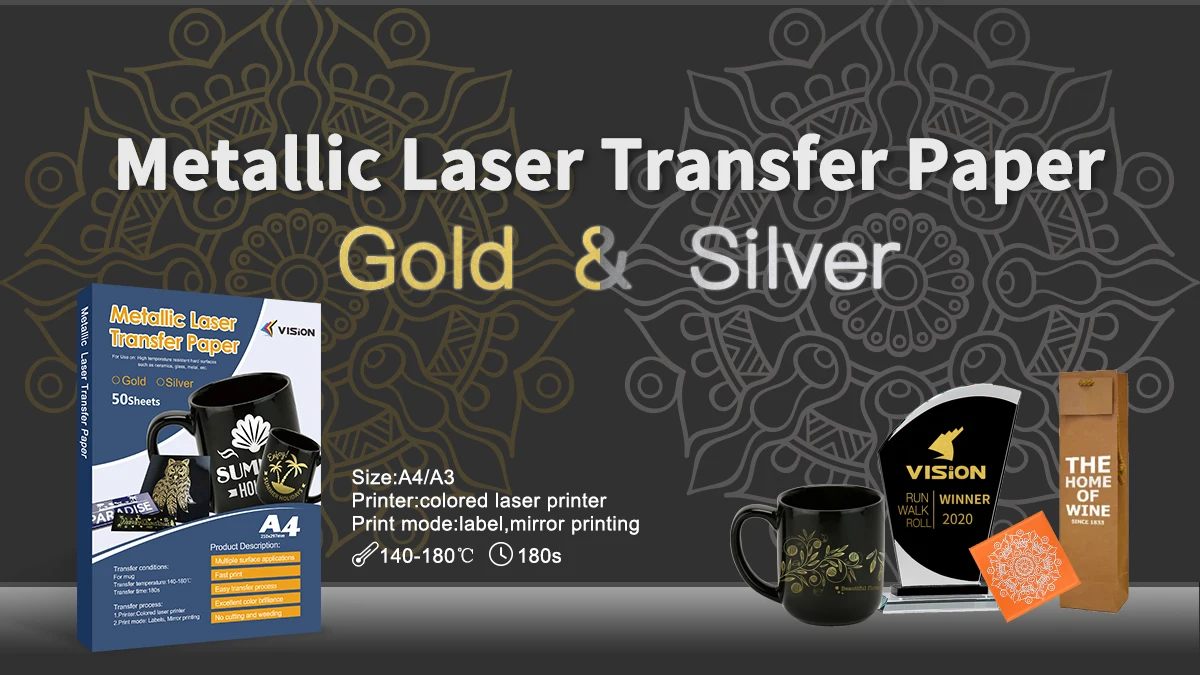 Metallic laser transfer paper is used to transfer on heat resistant and hard surfaces objects. It can be used on flat object