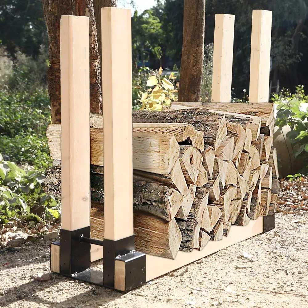 These durable black powder-coated steel firewood log rack brackets will keep firewood neatly stored and off the ground. The