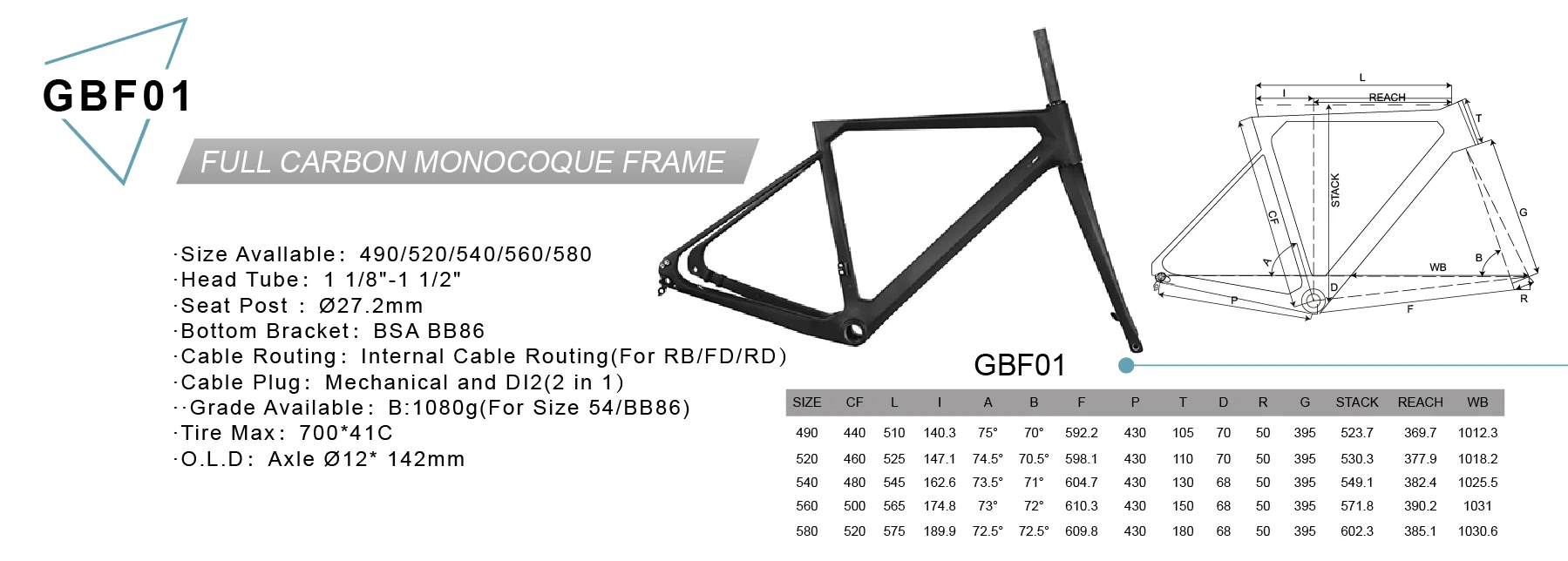 Hot Sale China Full Carbon Monocoupe Frame Gravel Road Disc Frame