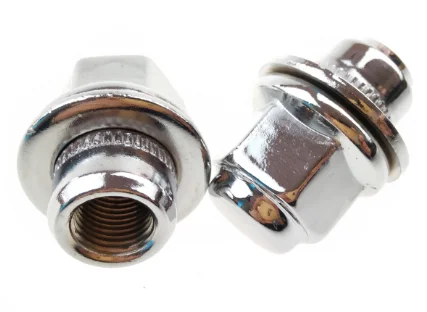 Lug nuts are also named wheel nuts , it is used for auto wheels for fastening , lug nuts with a flat washer under hex head for enlarging touching area for more friction and security , and a metal sealing cap on the hex head for stop rain or sand or others from entering lug nuts and ensure threads of lug nuts working smooth .