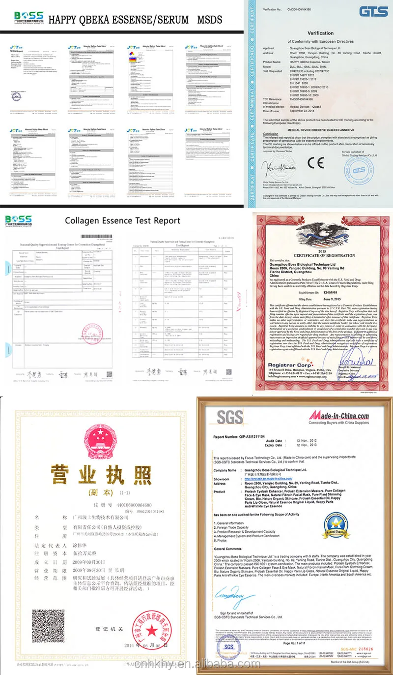Certificate | Our Factory With certificates GMPC AND ISO 22716. PRODUCT WITH MSDS,100% pure natural Collagen serum to keep face moisturizing without chemical additives. |
