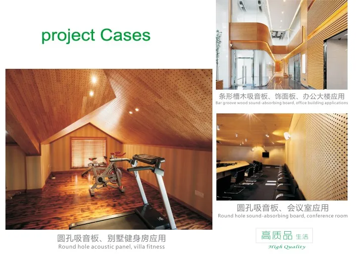 Compared with the grooved acoustic panel, the perforated wooden panle has better impact against effect.The highest fire retardant grade can reach A2(GB) grade, and the best environmental protection can reach E1(GB)grade.