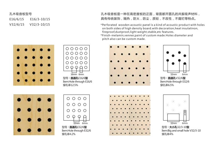 perforated sound reflective materials is a sound-absorbing material of MDF material with many holes on the back and surface,widely used in theater or other place need to reduce noise.