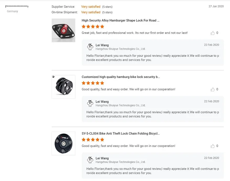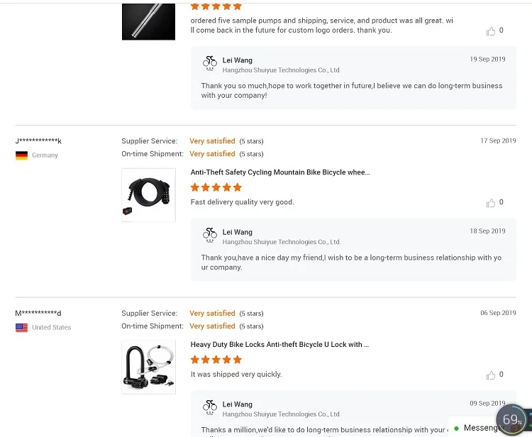Hangzhou Bicycle Tech is a leading supplier and the choice of champions being uniquely focused on sales and R&D of bicycles Accessories including Locks, as well as all other bicycle related parts/products, Bicycle Lights, Bells, Pedal, Saddle, Bags,Pump, Bottle Cage, Mudguard, Cycling Wear, Cycling shoes, glasses,helmets and any new interestering products. We are only focus on high qulity products. Since its foundation the company has remained faithful to the same selected product range, establishing its reputation for having an extensive knowledge of the market, new products, training as well as logistics, sales and distribution within the bicycling market. Hangzhou Bicycle Tech ensures superb value for its partners - customers and suppliers - through a clear focus on a limited number of products. The company has therefore become a favourite partner for the distribution of its products. This is reflected through long-standing customer and supplier relationships, built on mutual understanding and respect. The company's strong financial background is acknowledged by the "AAA" rating (the top rating) awarded by Citi Bank. By achieving the highest credit rating, Hangzhou Bicycle Tech can assure its partners that there simply is a no more stable distributor in the marketplace.