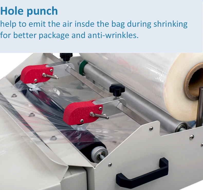 With adjustable film feeding system and adjustable conveying table to meets different requirements for different products .