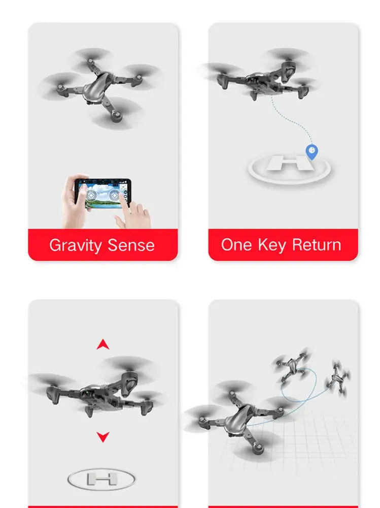 1. Two camera switch---4K HD front camera and 720P bottom camera can switch perspective (just APP switch) for every beautiful and unforgettable moment.