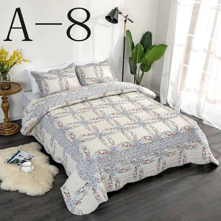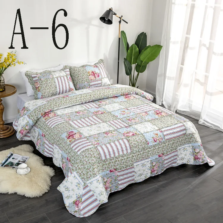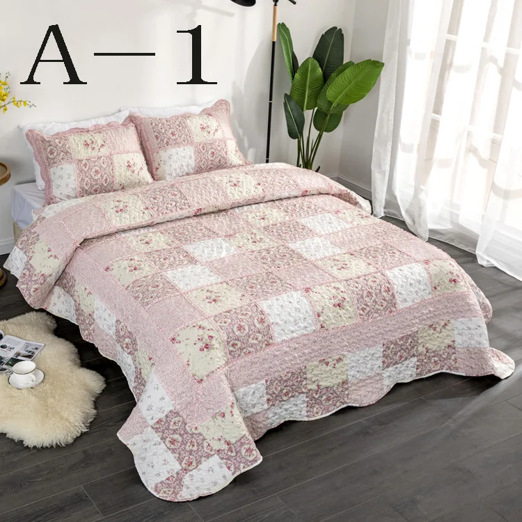 Description | Floral Printed Patchwork 3PCS Bedding Set with Ruffles Bedspread Quilt | ||||