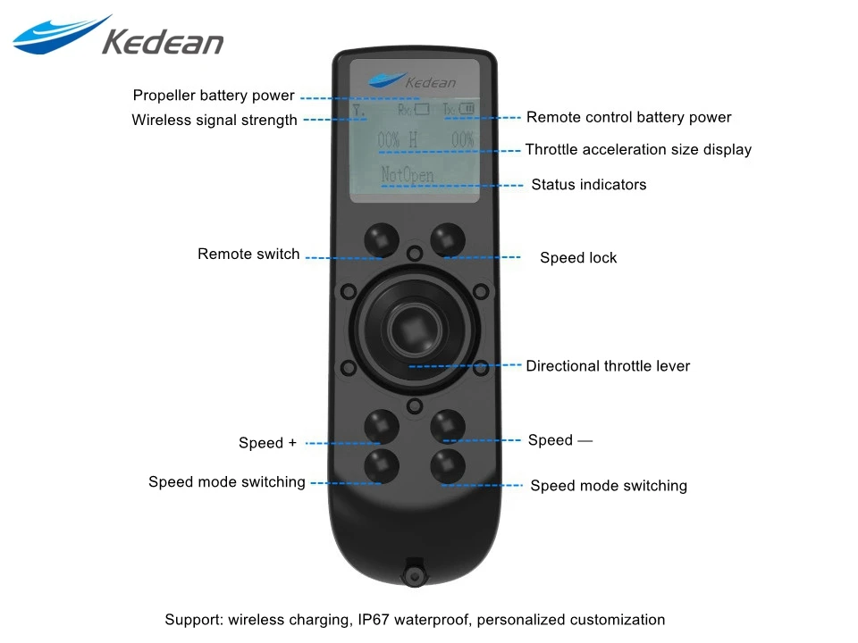 This is the latest design of a multi-function wireless remote control, it can be used in many environments: water equipment, air equipment, land equipment.Support waterproof, multi-channel Settings, battery power display, wireless signal strength display, wireless charging.You can also customize according to your own requirements!You are welcome to contact us at any time