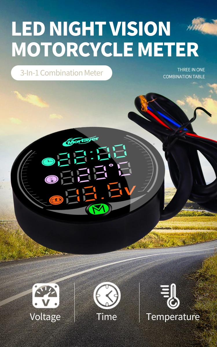 Waterproof LED Night Vision Motorcycle Meter Display Time Temperature Voltage