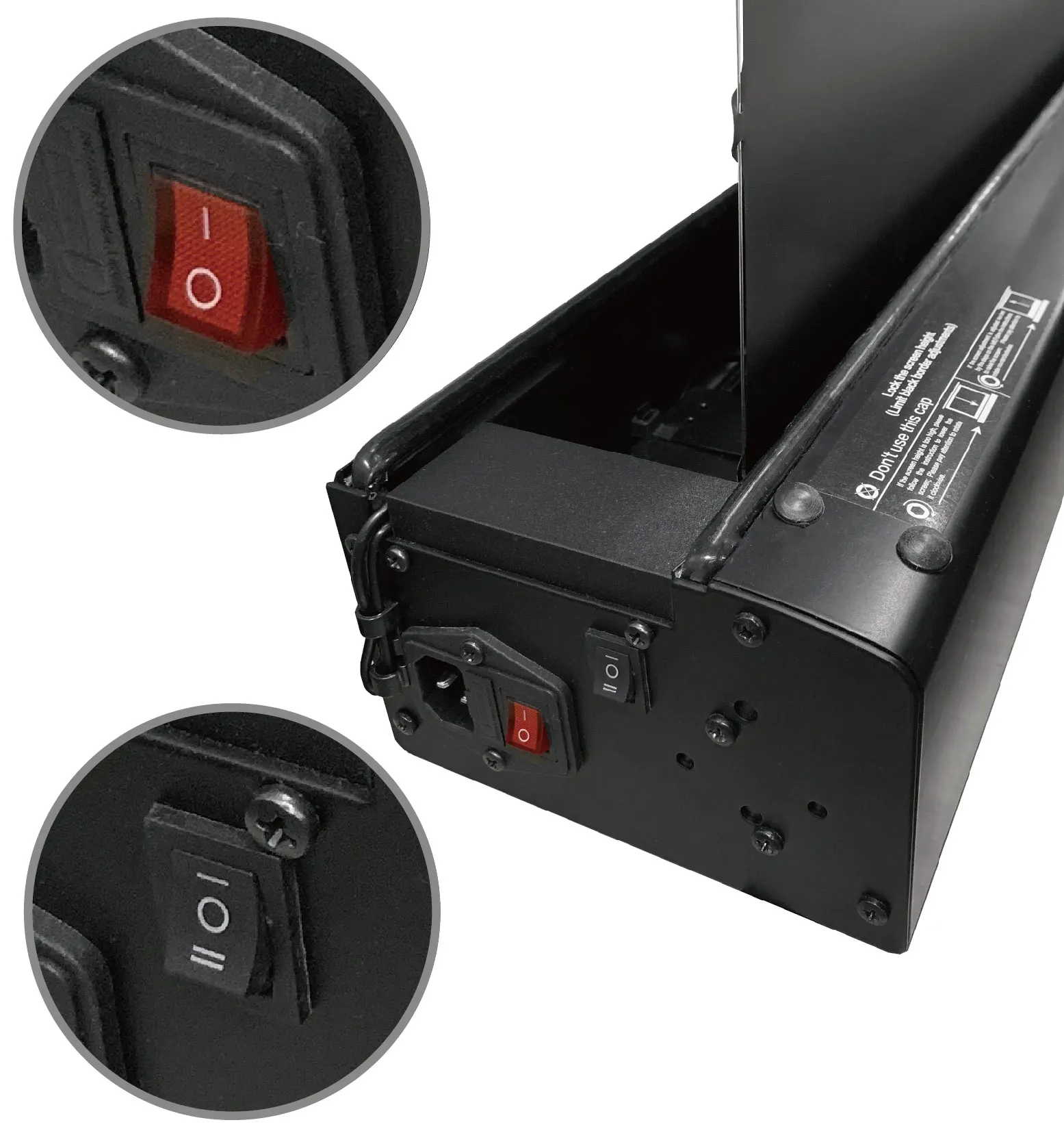 The manual switch can simply control the screen, it is your best choice when you can not find the remote control; After the screen rises, you can unplug the power plug or turn off the manual button switch without power, because the viewing timeis long, and the screen does not require additional power to support the screen rises.