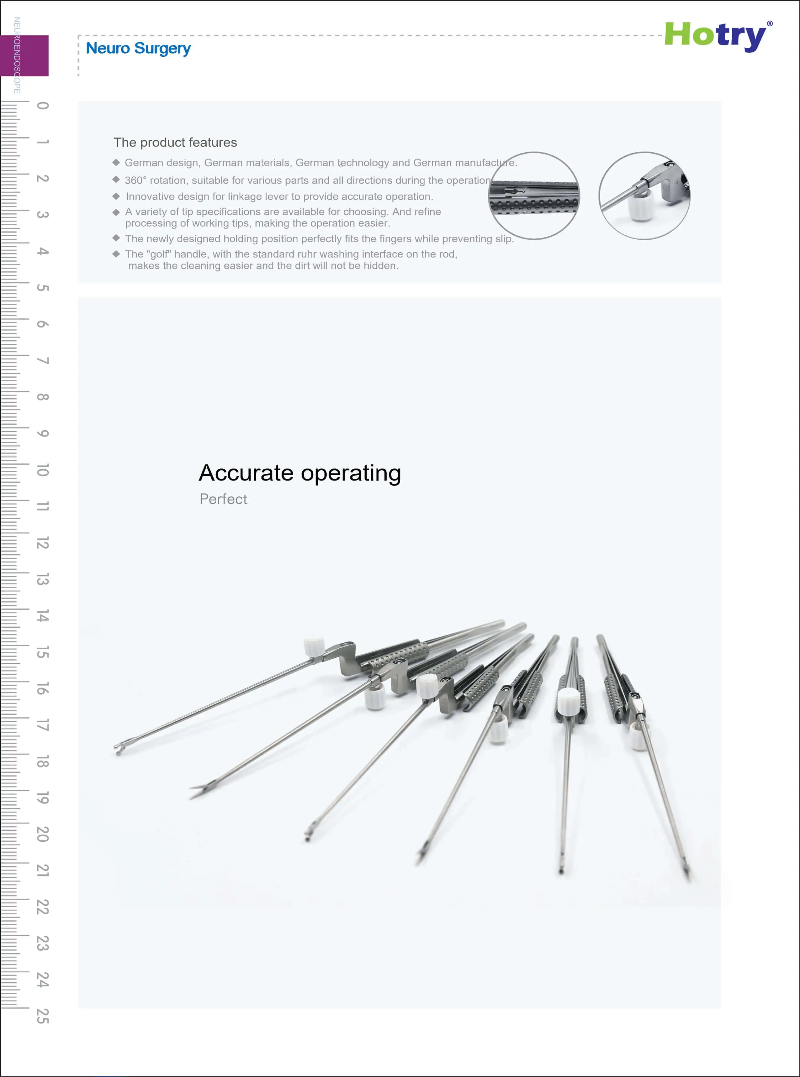 The 360 ° rotatable head end design can ensure flexible change during surgery. The lever linkage design is used to provide the ultimate operating feel. The new gripping position is non-slip and fits the hand perfectly.