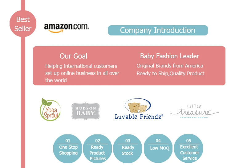 1. Q: Are your brands authentic? A: Yes, we are authorized distributor of Hudson Baby, Luvable Friends. 2. Q: Do you provide the sample before I order? A: Yes, you can buy 1 pcs of samples but need 3 times of the wholesale