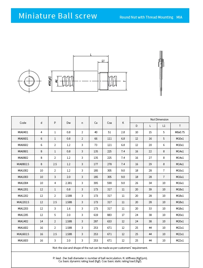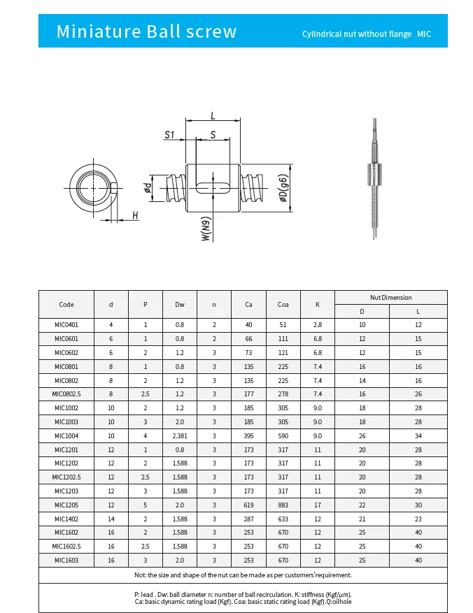 Remarks | Various ballnuts are available upon drawing |
