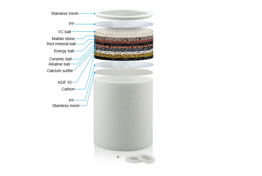 Germanium bath ceramic ball in the handle can effectively remove the chlorine in tap water when bathing, so that the water has functions of antibacterium, shrinking pores in the skin, moisturizing and whitening skin to prevent skin aging.