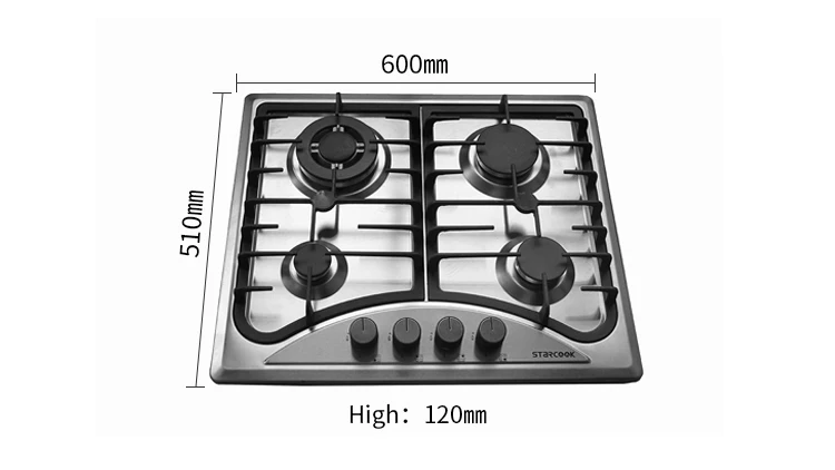 1) Household built-in gas stove, 0.7mm 201 stainless steel panel is durable and easy to clean.