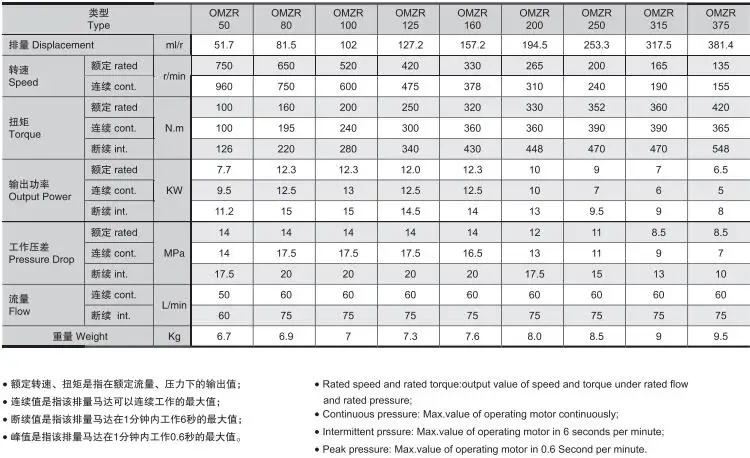 OMZ series' orbit motors are designed to be shaft distributon flow or disc distributon flow structure, which enable to work steadily in high pressure condition, thus to prolong its service life. Main characteristics: 1.Advanced gerolor gear set,with low pressure of start-up, high efficiency, and reliable operation; 2.High back pressure endurance due to its high pressure shaft seal; enable parallel or series'connection; 3.Good compansate ability due to its advanced distribution structure; high volumetric efficieny and load speed stability; 4.Compact structure; easy installation.