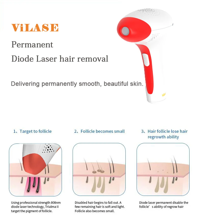 Vilase is the home use diode laser hair removal device which becomes more and more popular around the world. Patients can DIY hair removal easily at home, or even on travel.