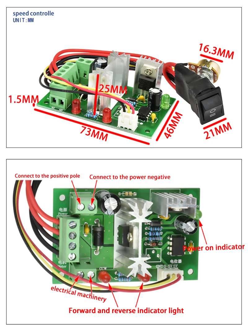 12V 24V 36V 48V 40A AC Electric PWM Electric Variable Phase Motor Speed Controller DC Speed Control For Brush Motor | ||