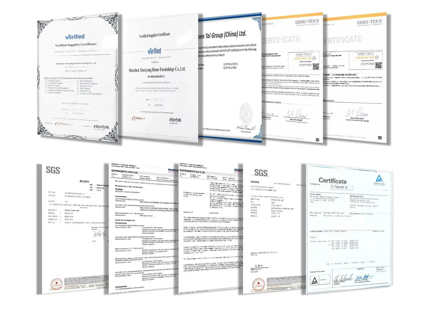 There are over 150 workers, 3 engineers ; 2 designers, 5 QC workers, 20 sales. Over 10000 square meters production area, 10 producing lines, 5 workshops and 3 warehouses. And have been certificated by TUV, SGS, CE, CERTIPUR US,OEKO-TEX100,etc.