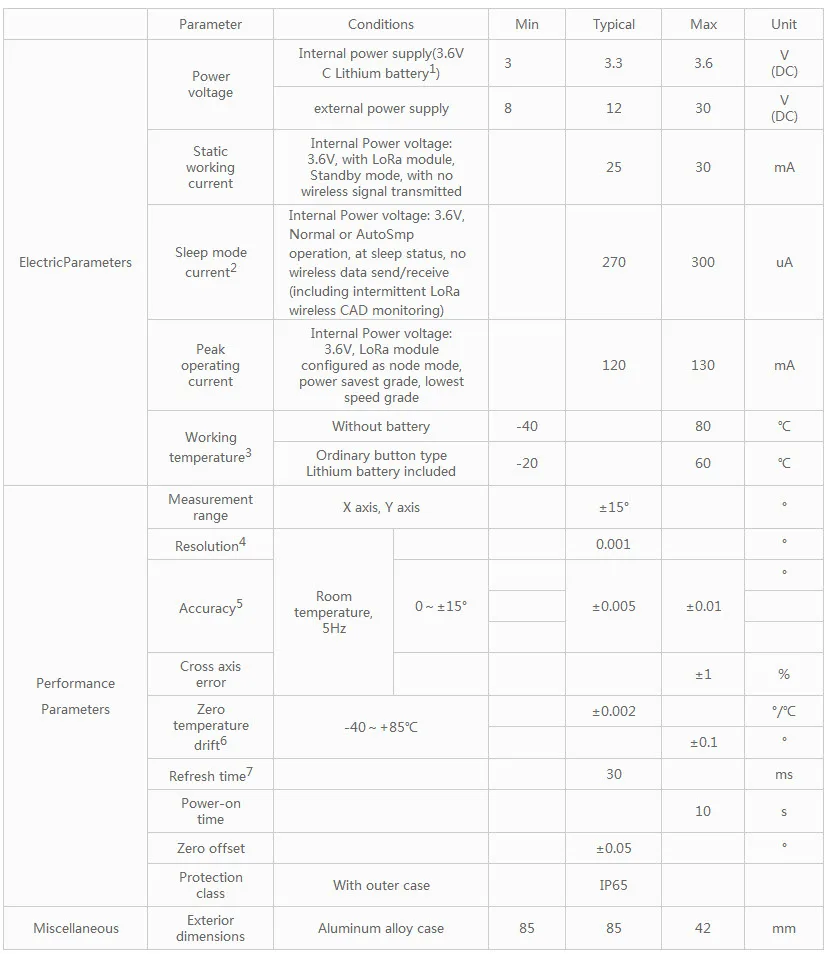 The ZCT800ML-S215 wireless inclinometer is a high accuracy tilt sensor developed by Shanghai Zhichuan. Based on LoRa wireless transmitting technology, the inclinometer is capable of detecting ±15° tilt. It features an embedded RTC, wireless wake-up and a low power consumption sleep mode. It is suitable for safety monitoring in industrial production and construction applications.