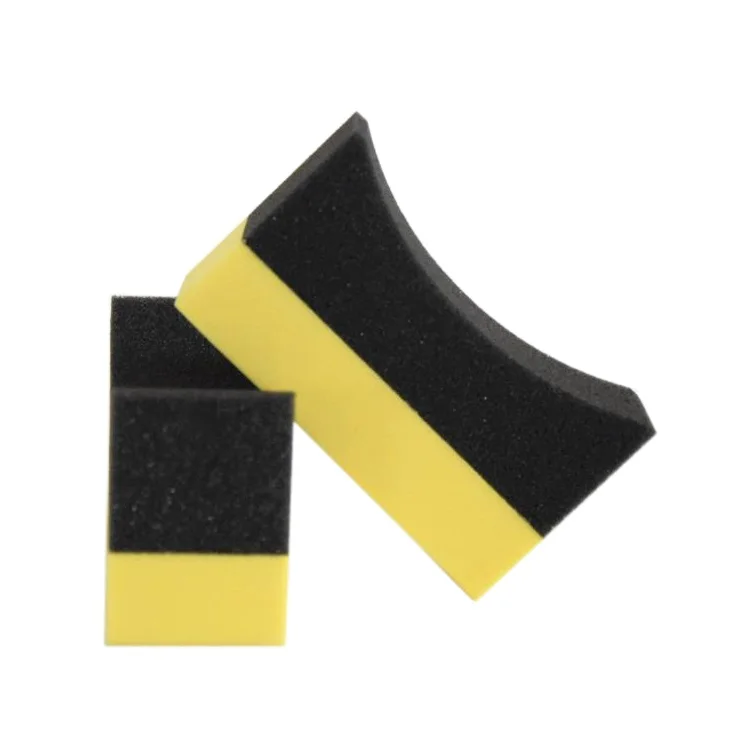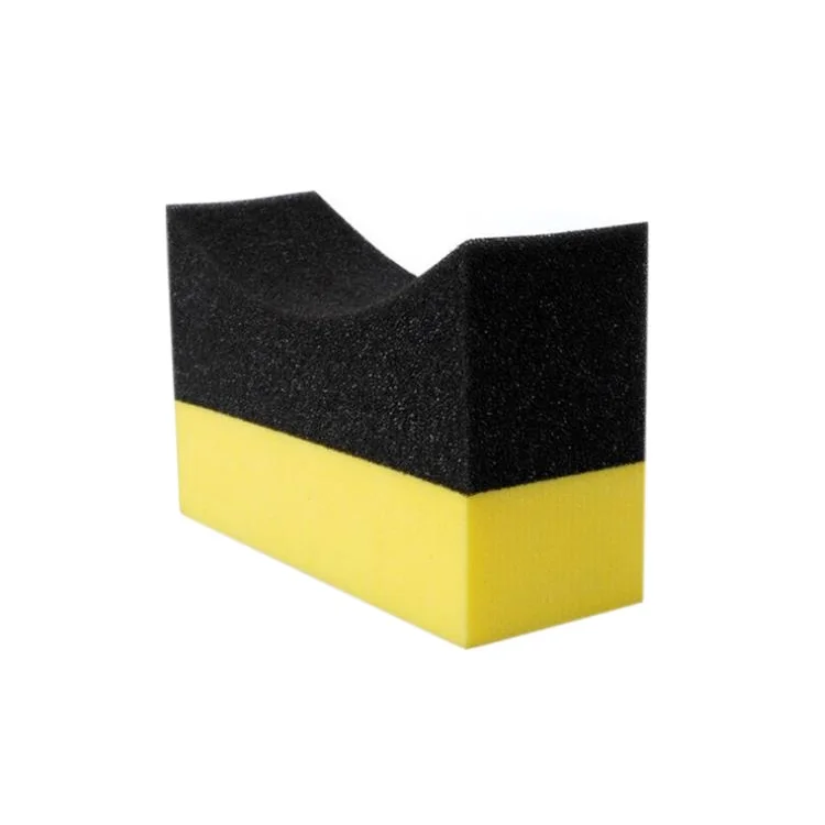 Specially designed for cleaning car tyres, black sponge part with arc design fits tyres perfectly, yellow sponge part can be used for metal wheel hub cleaning and polishing.
