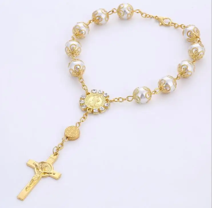 Product Specifications | cross bracelet,pearl size is 10mm,gold color, 1pc/bag |