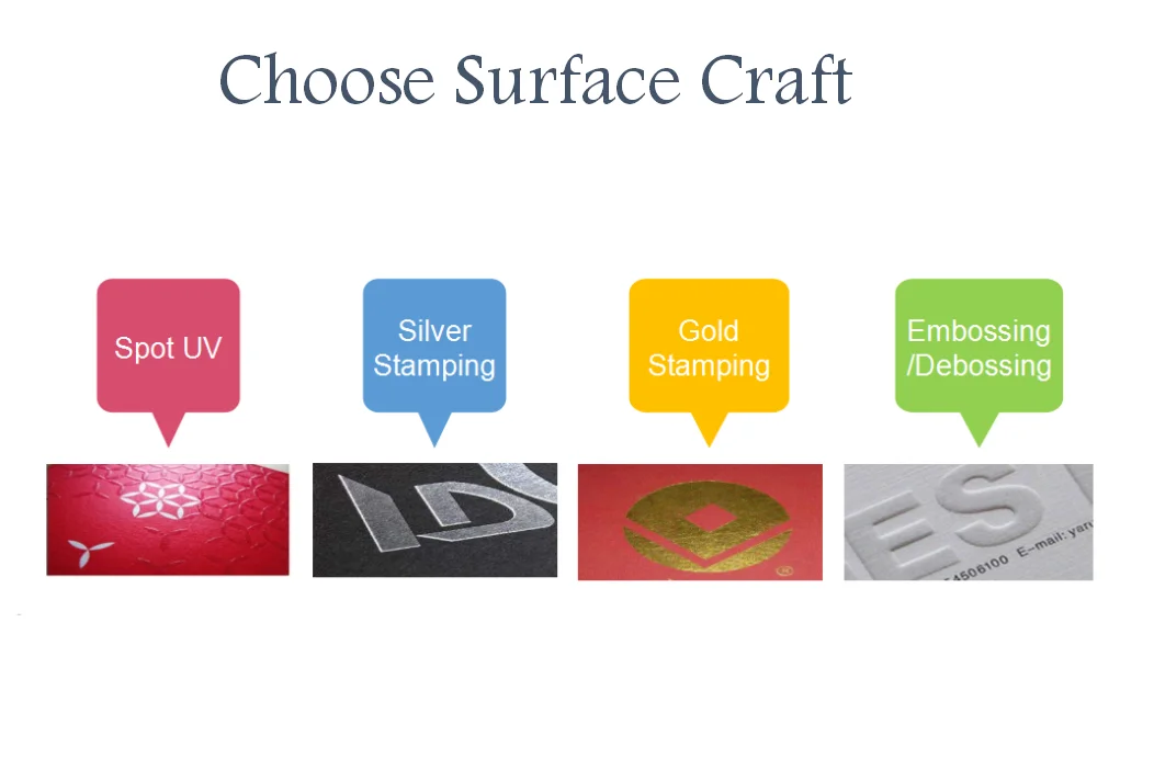 Finishing | gloss/matt lamination | hot stamping, spot UV, embossing,/debossing .etc | |