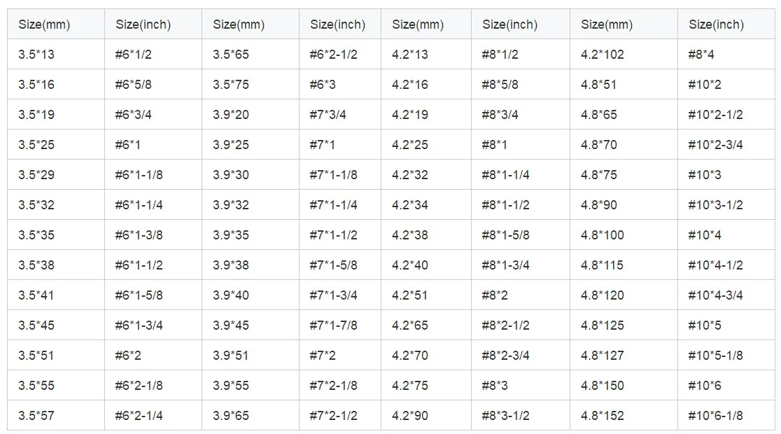 Length | 11mm-175mm, 5/8'-7' inch |