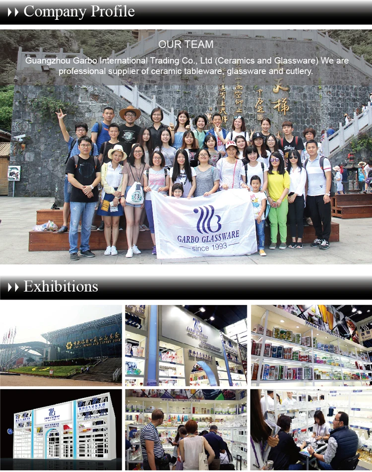 Guangzhou Garbo International Trading Co., Ltd (Ceramics and Glassware) is one of the most professional suppliers of household tableware in China. Our main products are glassware and ceramic ware such as glass cups, glass mugs, glass candy jar, glass ice cream cup, wine glasses, glass plates, glass jugs, glass water set, glass decanter, glass bottles, ceramic cup and mug, ceramic bowl, ceramic plate, porcelain dinner set, porcelain tea set, stoneware, bone china, etc.