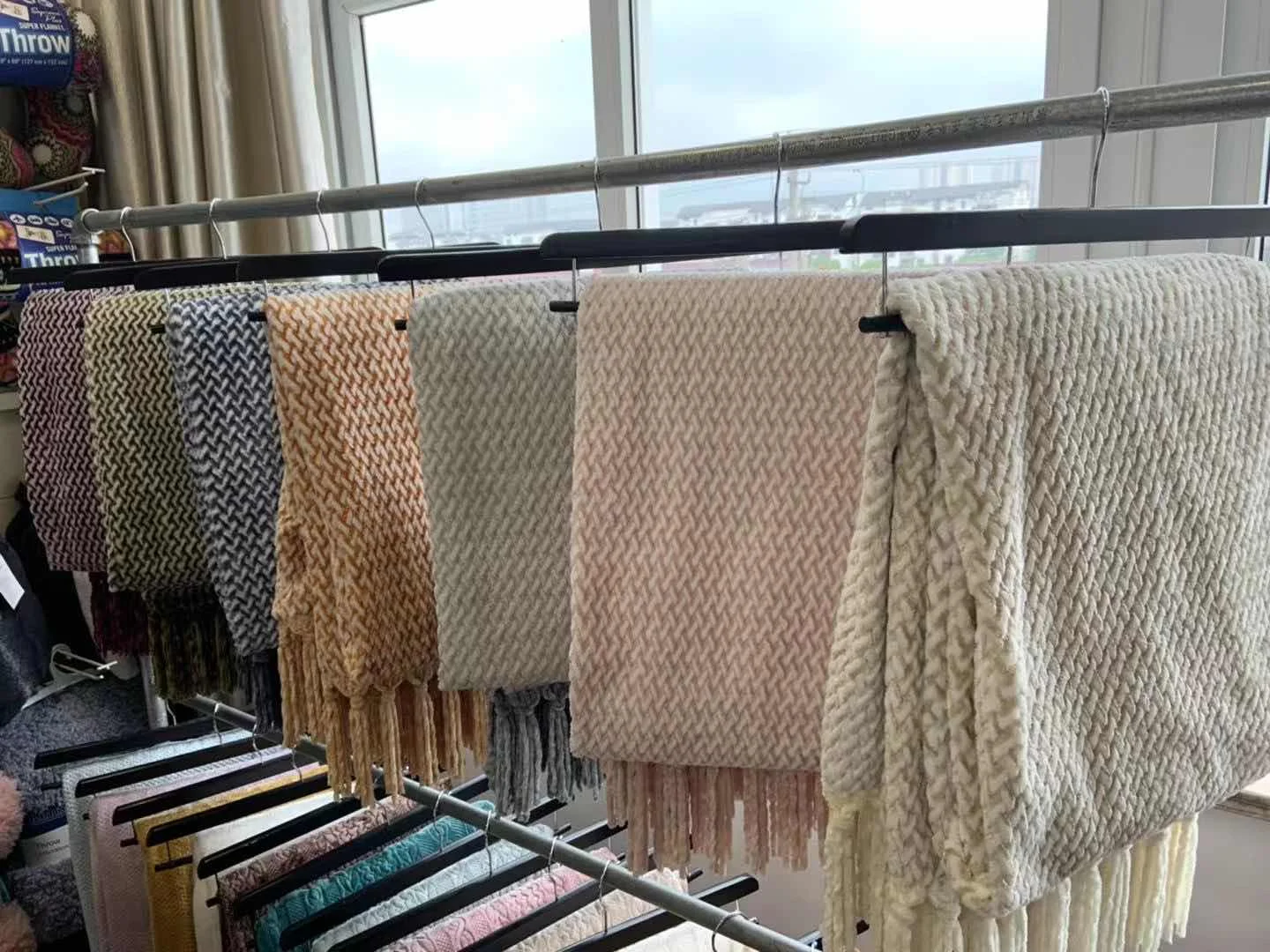 Description | 2 Layer knitted throw blanket, front is 360gsm chenille fabric reverse to 240gsm Sherpa fabric. packed in ribbon and card. knitted pattern with Chenille Material, Super soft and Warm. |