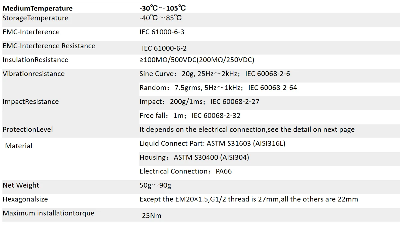 Process connection | G1/8(M), G1/4(M),G1/2(M),NPT1/8(M),NPT1/2(M),NPT1/4(M),M20*1.5(M) Flat diaphragm customization | ||||