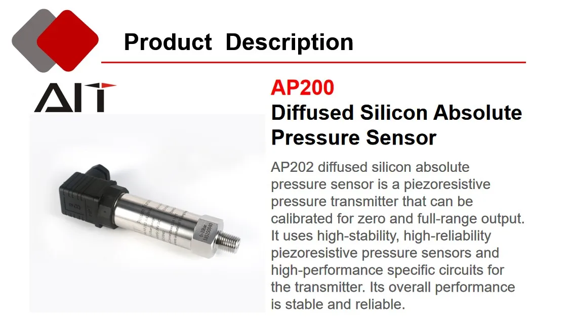 The RP202 pressure transmitter is designed for applications such as air conditioning refrigeration and water treatment control equipment, such as booster pumps, air compressors and air conditioning systems. It is also suitable for a variety of other industrial applications, with a variety of structural forms and diverse output formats. A variety of pressure connections to meet most application requirements. Compact, especially suitable for installation in tight spaces.