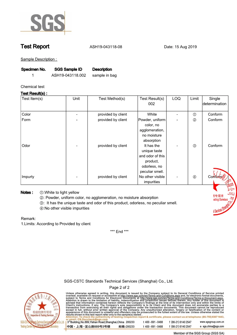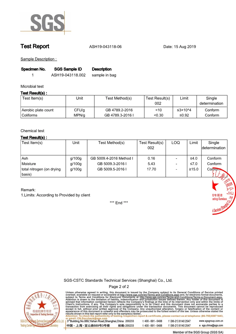Polypeptide in dry basis ( g/100g) | % | ≥ 87.0 |