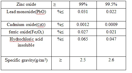 Indirect method zinc oxide