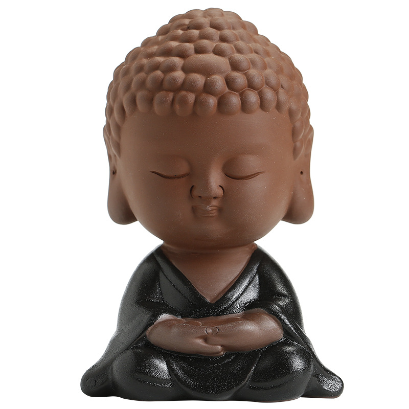 Three Cute handmade ceramic baby little buddha head statue mold monk for home decor