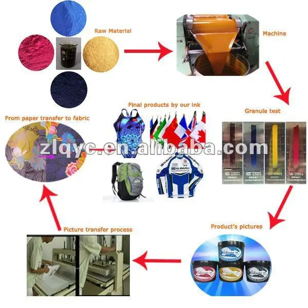 For our sublimation offset ink, first print image on paper,second put the paper on fabric, and then press the paper with transfer machine. Under the temperature about 190°C-220°C, the ink on paper will become gas and go into fabric. So the image will be from paper to fabric.