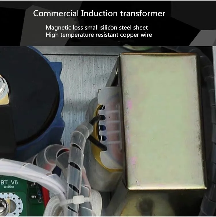 5. Safety design: High/Low voltage protection, Phase loss/failure protection, IGBT overheat protection, heating coil overheat protection, over current protection, short/open circuit protection, Surge protection, anti-lightning protection, dry burning protection, leakage protection ......