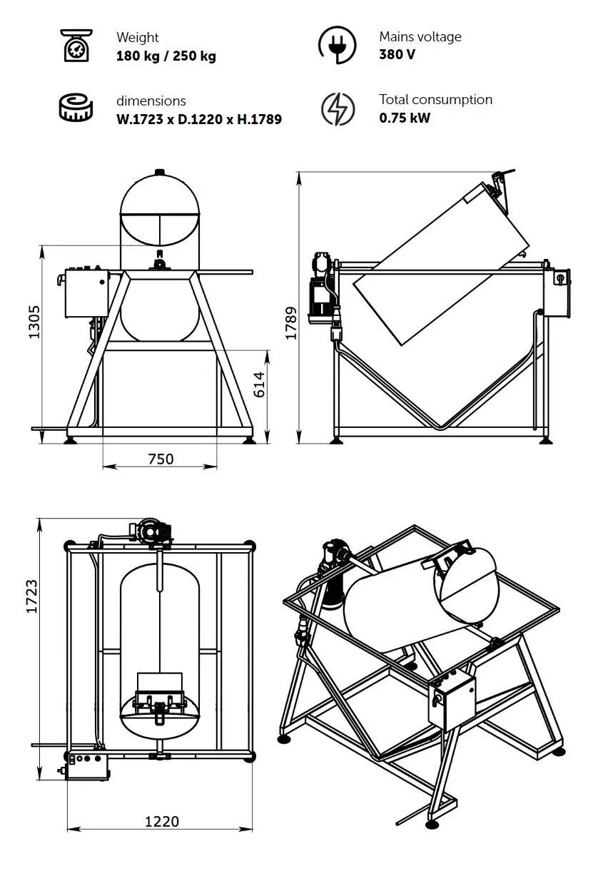 Technology of mixing coffee in Typhoon Coffee Mixer is simple and effective. While rotating the product in the angle of the inclined axe, Coffee Mixer delicately moves coffee beans all around the drum to mix it. This method will create high efficiency and quality result in coffee mixing. Easy way of hopping coffee beans and dropping the blend will both exclude the loss of product and reduce your operator's efforts.