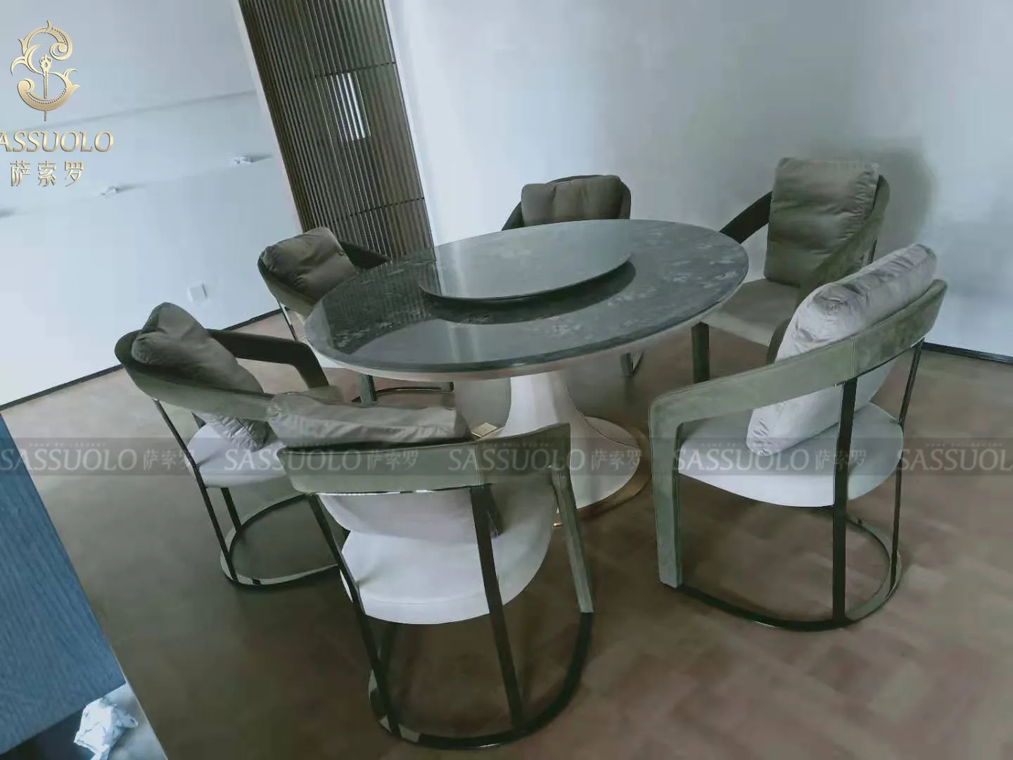 Sassuolo Modern Leather Armrest Dinning Chairs with Feather Pillow Dining Chair Dining Room Furniture Home Furniture Metal Soft