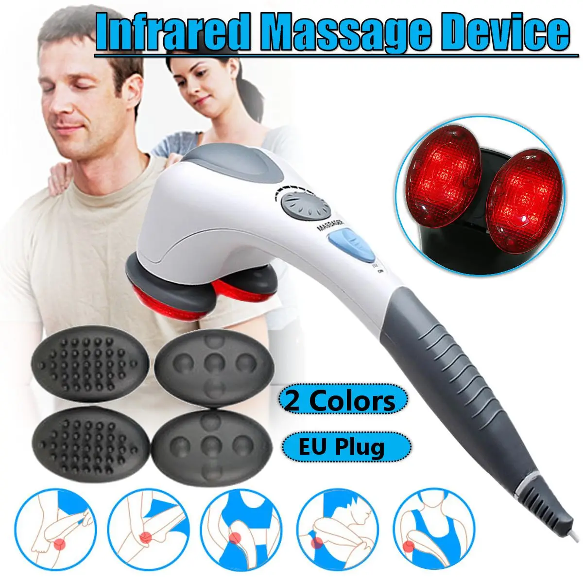 electric dual head powerful shiatsu infrared handheld neck back massager vibration hammer